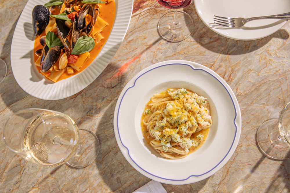 The menu at Flaminia is a culinary map of Italy’s great port towns, from Cagliari and Naples to Venice, Genoa, and Palermo. A dedicated crudo bar serves as the anchor of the dining experience, offering freshly shucked oysters, delicate scallops, and the finest daily fish selections. From there, the menu expands into generous antipasti, rich seafood pastas, and timeless coastal classics.